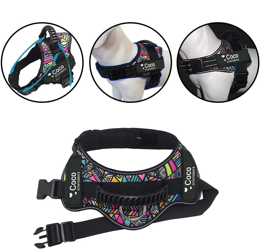 Optez pour un contrôle optimal et une personnalisation unique avec notre Harnais pour Chien Patch Personnalisé avec Poignée.